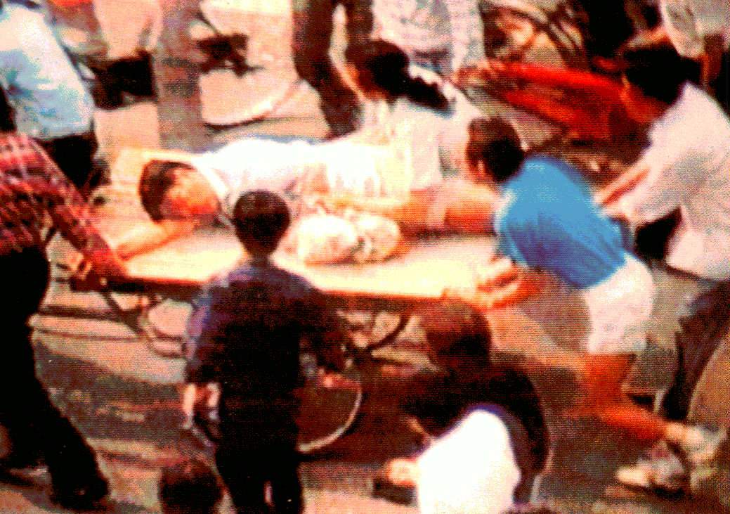 我们发现全世界的共产党,不管在地球的哪个角落,都是一样的残忍和贪婪,流氓无产者就是靠吸吮百姓的鲜血和骨髓成为暴发户的,僵尸的脑满肠肥的儿子、中国最大的贪官江绵恒就是最好的例子!很多「六四」的受害家属要求刽子手给受害者平反,结果呢?连自己都没有了人身自由,你可能想不通,现任的中共当权者中有些并没有参与血腥镇压,为什么不支持平反呢?这就和僵泽民已死,而为了维护整个中共的利益,中共的喉舌天天在那里编瞎话一样。没有了僵泽民, 中共依然残暴;杀死了头狼,群狼仍不会改变吃人的本性。所以为了自己的安全,为了下一代不再受迫害,只有铲除了刽子手,一切颠倒的历史就自然会颠倒过来。 六四”事件已有近12年了,“六四”事件使江泽民们得了益,但更多的人却为它失去了生命。作为亲历“六四”事件的普通学生,血腥惨案的见证人,看到和听到周围的人已经淡忘了此事,甚至有很多人认为“六四”镇压有利于中共统治的国家时,心中特别悲哀。我想应该让大家知道一些事实,请大家不要忘记因“六四”而牺牲的普通死难者和那些屠杀他们的中共刽子手们。 六月三日下午,我在围观了西单公共汽车(“六四平暴”镜头中,几个学生端着枪向群众展示)和新华门附近小中巴(里面有很多枪支)后,来到了天安门广场。这时广场的帐篷里已经没有几个学生了,只是靠广场西侧的一个大帐篷下,还在展出着一些从进城便衣部队那里缴来的菜刀匕首棍棒和绳索等。尽管如此,大家当时仍然只是猜测,军队只是想化装进城,以便躲过市民和学生的阻挠。看起来,军队可能要把学生从广场撵走,清理天安门广场了。所以我们几个一起来的同学决定回校吃饭,晚上再来广场坚守。 晚上七八点的时候,广播里传来北京市的通告和一些有关军队要进城的传言。我们几个刚吃了些方便面的同学商量了一下后,决定去广场支援那里的学生。然后,我们一行十几个人骑着单车,打着大旗,沿着学院路向南骑去。一路上,路旁的市民和学生不断地向我们欢呼,同我们一齐高呼口号,气氛非常热烈,但谁也没想到一场大劫正在向着北京袭来。 我们骑着单车从复兴门上了长安街。这时间正是军车已经开过去了的空隙,我们沿着长安街向东骑行,路上没遇到什么险情。当时的长安街灯光昏暗,充满了血腥和恐怖,街两旁的临时工地的围墙和薄铁皮门上布满了枪眼。当我们快到六部口的时候,一辆正燃烧着的装甲车里面的子弹还正在“霹雳啪啦”的爆着。这时候,西面开来了一些军车,我们十几个人马上和周围的人一起躲向了路边,我们十几个人也一下子失去了联系。我们其中的一个同学就是这时中了一枪。侥幸的是,他当时正半趴在另一个同学的头上,胳膊搭在中间,子弹正巧从他的头下和那个同学的头上,穿过了他的右臂,若子弹或上或下一点,那就肯定会击中他的或另外那个同学的脑袋了。 当时,我和另外一个同学小王仍没跑散,待军车过后,我俩开始小心翼翼地步行,沿长安街南侧墙跟儿向东移去,我们的生死经历就从这开始了。 这时军车断断续续地过了约半个小时。之后,我们的人群又开始聚到了一起,这时的人数已比刚才多了些,大家开始相互攀谈起来。当谈到无人得知天安门广场的情况时,大家都想冲进广场,去救那里的学生。也不知谁先打的头,我们相互挽起手来,横在长街上组成了一个人墙,然后开始唱着歌(我记得好象是国歌和国际歌等),手挽着手,向东面的天安门广场行进。当行至离大会堂西侧路约一百多米时,我们已经能看到路前方站列的军人人排了。 我们仍然继续高唱着前进,当我们行至离军人不到几十米的时候,我们已能模糊地看到前面的军人排正在平端着枪对着我们。突然,我们看到了正前方辟雳的火光,同时也听到了密集的枪声和哭叫声。前面开枪了,我们的人排一下子倒下了许多,人们一下子就散了开来。我右边挽着的一个学生,一个踉跄倒了下去,我差一点被他带倒在地。我猜他是中枪了,忙和另一个人把他架起来就往回跑。所幸,军队并没有追赶,最后我们在离军队大概二百米的地方停了下来,军队这时也停止了射击。(我清楚地记得当时的情形,当时,的确很多枪都是朝天放的,否则的话我也没命了,但我肯定当时也有不少是平射的,因为我们当时一下子就倒下了许多人。) 中弹的人们很快被车推人背地架离了长安街。过了好大一会儿,人们才又聚了起来,这时我们的人又多了一些。我们又开始组成人墙,手挽着手,高唱着歌向天安门方向行进。和上次一样,当我们离军队几十米的地方,军人又开了枪,我们又被打了回来。这样反反复复约有四五次,每次我们的人数都在增加,而每次也都有中弹的被架回来。只不过,中弹人数远少于第一次的罢了。记得有一次,我旁边的又一个同学中了弹,被我和另一个人架着拖回来。我后来才看清,他的裤子大腿上被打了个黑洞,黑洞里一劲儿地向外冒血。虽然每一次前进,我和小王都是走在头排,但幸运的是,我们俩一直都没被击中。 记得最后一次行进时,天已经亮了。当行至离军队约有五十米的样子,我们已经能看清对面的军人,他们正平端着枪对着我们,我们也不敢再往前了,只稍退了一点,开始和军队人排对峙站着,中间约有五六十米的样子。 后来,我们开始高呼口号,唱国歌和国际歌等歌曲。对面的军人听到我们唱,也和我们对着呼